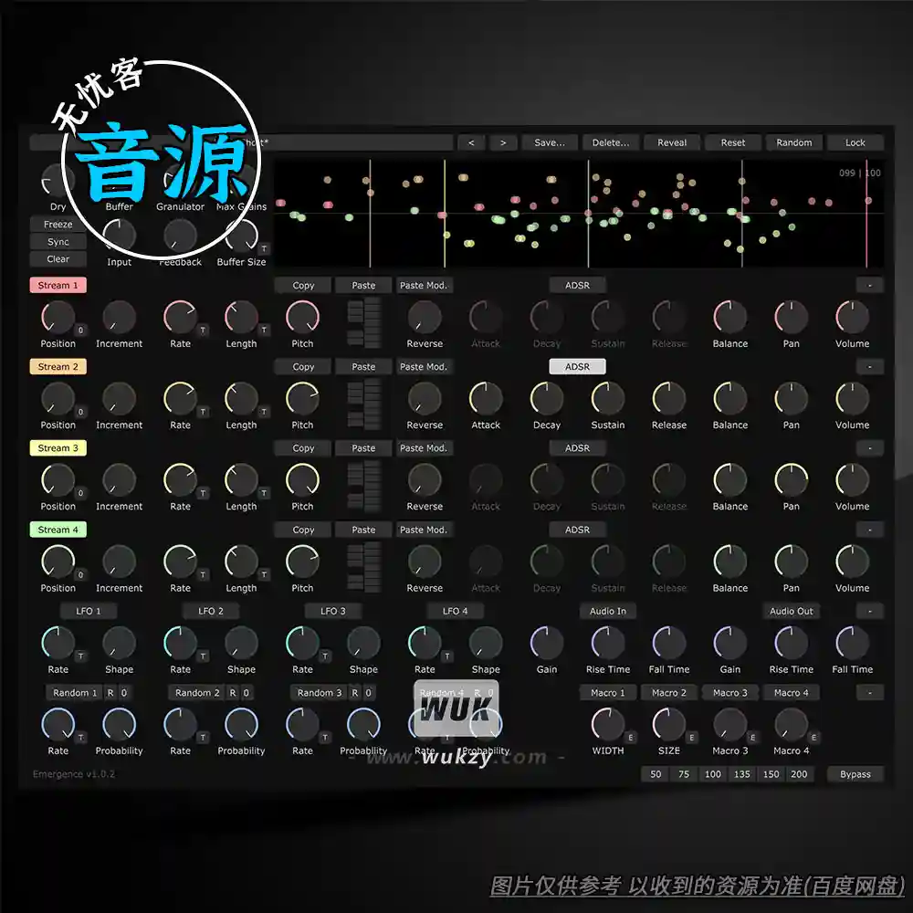 Emergence 是一款实时颗粒效果器。它可以以独特的方式改变你的声音,创造出从复杂的延迟模式到奇异噪音或优美的多层音景等各种效果。
