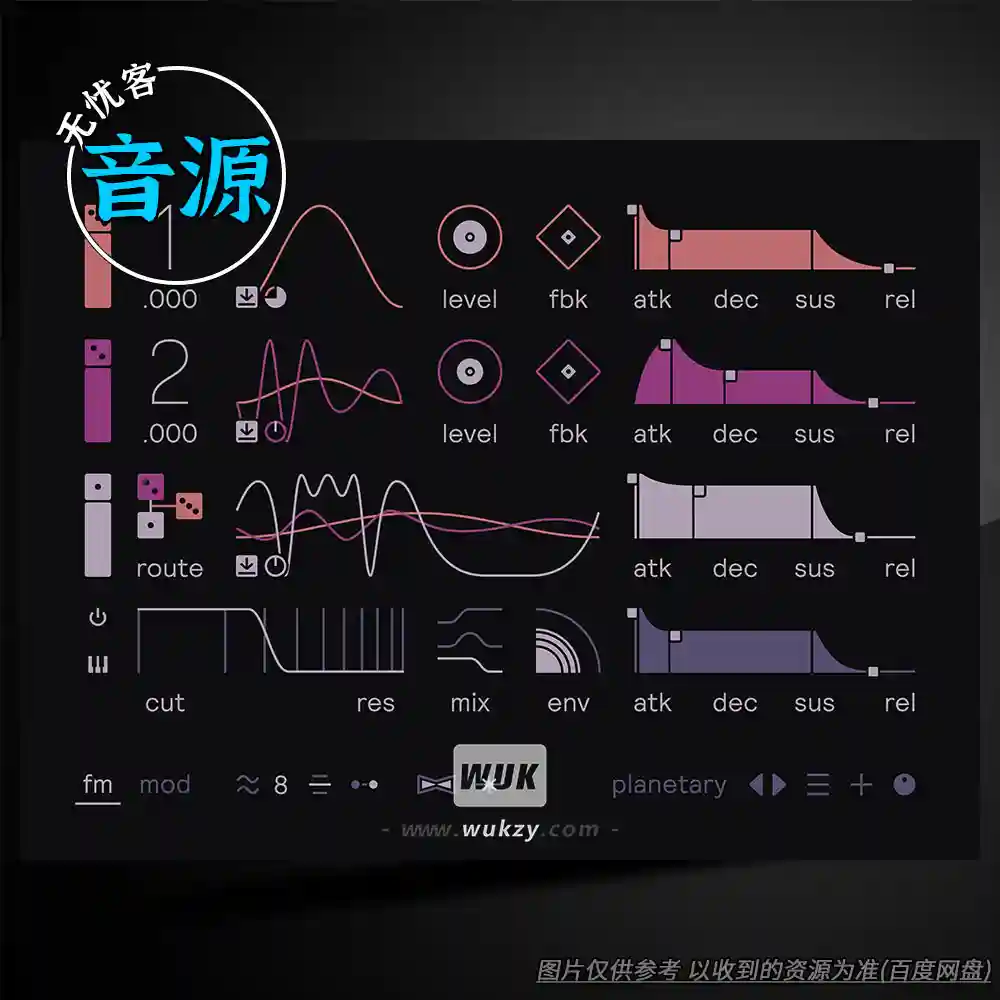 -灵活的调制矩阵:支持最多 6 个调制目标,搭配两个低频振荡器(LFO)和两个 ADSR 包络,可以随心所欲地调制 FM 控制参数。